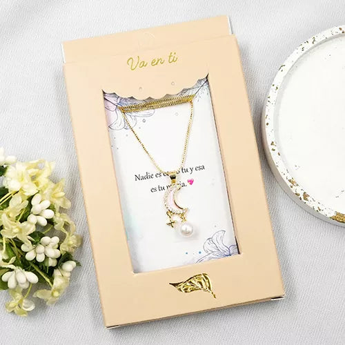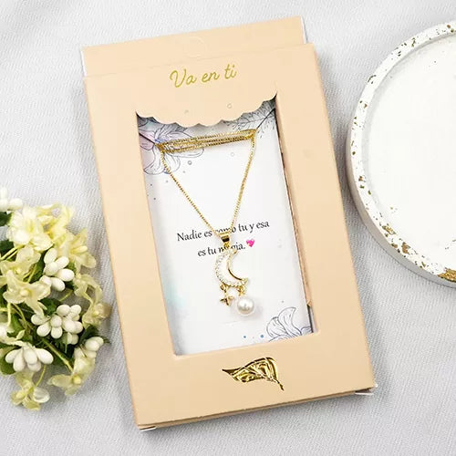 Collar en rodio moon with hanging pearl