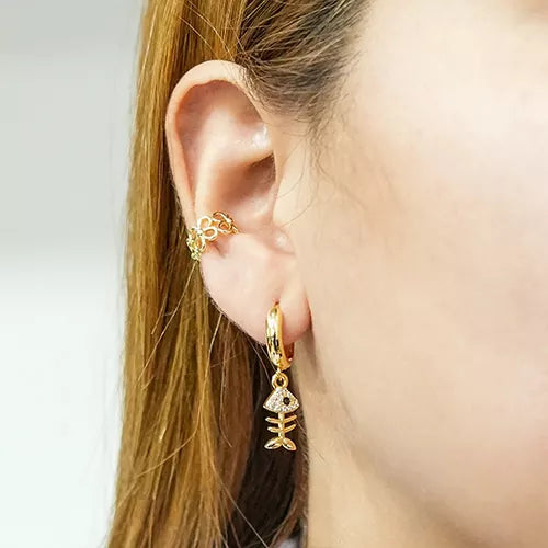 Par de candongas en rodio fish skeleton